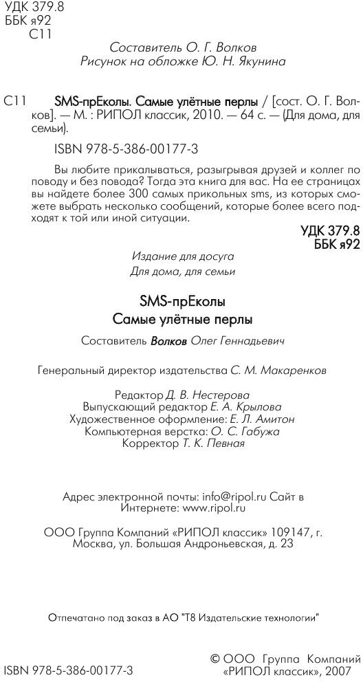 Сервис сравнения цен СкидкаГИД предлагает сравнить цены на товар «Книга: SMS-прЕколы. Самые улетные перлы (Группа авторов); РИПОЛ Классик, 2007»