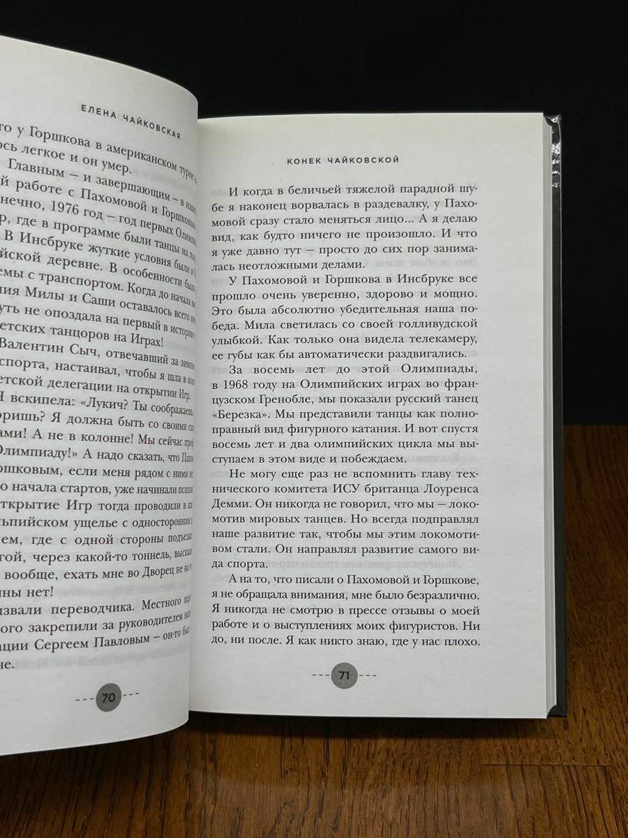 Великий тренер и незаурядный человек Елена Анатольевна Чайковская написала очень душевную книгу. После прочтения немного приближаешься к пониманию, откуда берутся люди такой величины, такого масштаба. Здесь и рассказ о родителях, семье, учебе в ГИТИСе, и дань уважения ученикам, коллегам, друзьям без лести и лишнего пафоса. Всем поклонникам фигурного катания-однозначно к прочтению!