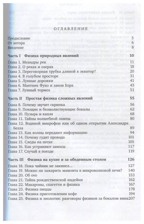 Занимательная и полезная книга двух известных физиков-теоретиков рассказывает о природе ряда явлений, встречающихся нам в повседневной жизни, в окружающем нас мире. Авторы делятся с читателем своим восхищением красотой Физики - науки, возникшей в незапамятные времена и ставшей сегодня мощной научной индустрией. На примере простых и знакомых каждому явлений читатель увидит действие иногда весьма сложных физических законов. Из первых трех частей книги можно узнать, почему петляют реки и сколько их может вытекать из одного озера, как образуются лунные дорожки и отчего небо голубое, почему звучит скрипка, как приготовить хороший кофе и формулу для времени варки макарон. Последняя часть более близка к области профессиональной деятельности авторов - здесь рассказывается о квантовом мире, сверхтекучести гелия, сверхпроводимости... По сравнению с первым изданием книга удвоилась в объеме, в ней появились главы, рассказывающие о таких фундаментальных открытиях, как ядерный магнитный резонанс и высокотемпературная сверхпроводимость, о новой области, называемой сегодня нанофизикой, и, конечно, об использовании новых открытий в каждодневной жизни.