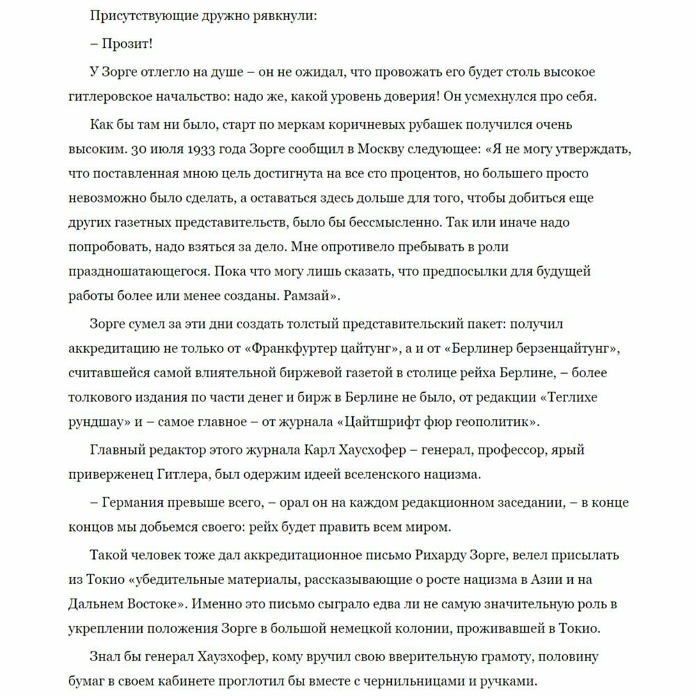 Зорге можно говорить до бесконечности,не хватит места на странице.Нового я здесь узнал немного,в частности,о