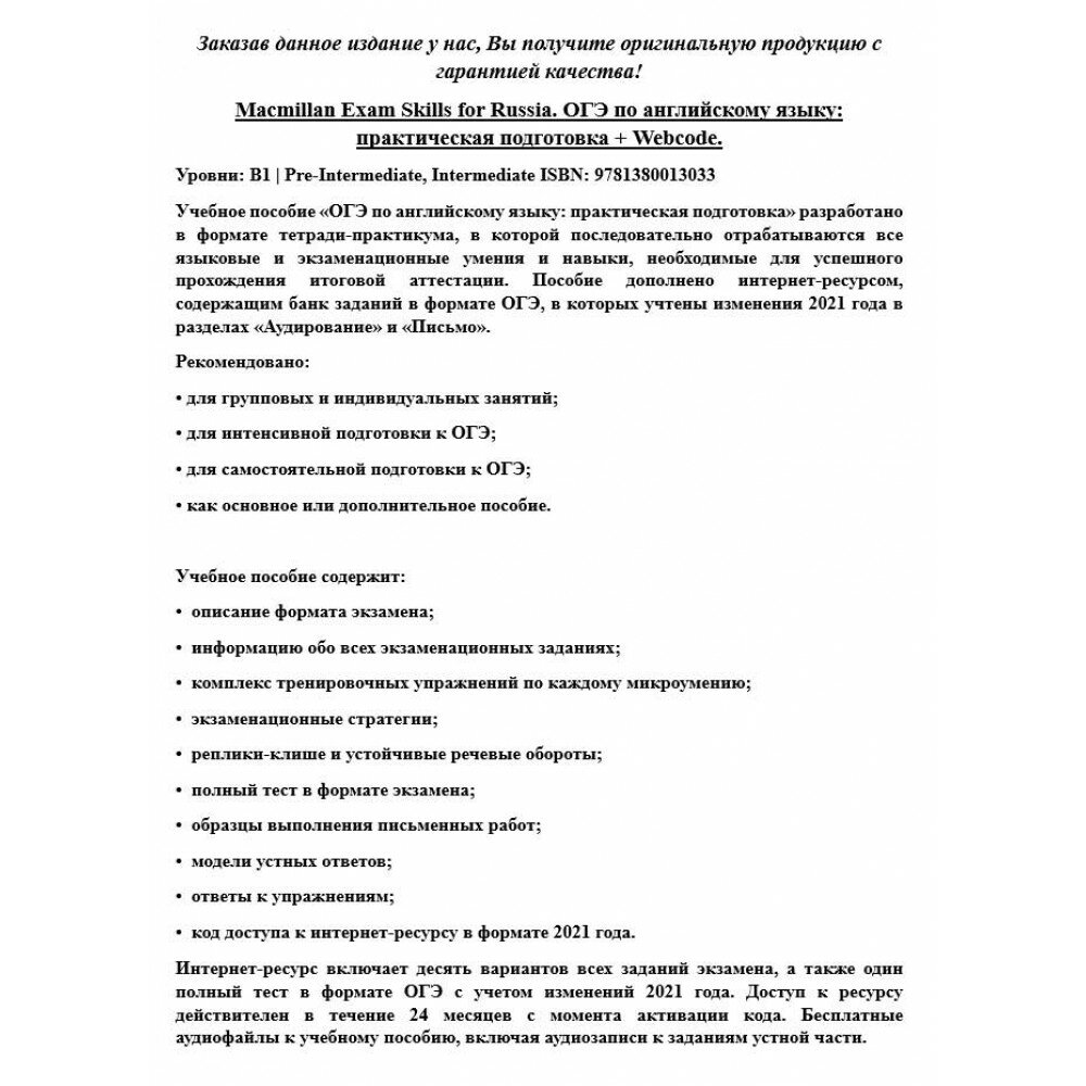 Macmillan Exam Skills for Russia: учебник для подготовки к ОГЭ по английскому (грамматика и лексика)