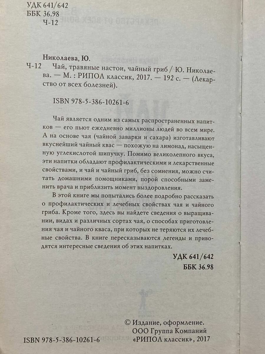 На сегодняшний день товар «Книга: Чай травяные настои чайный гриб (Николаева Юлия Николаевна); Рипол-Классик, 2017» можно купить с кешбеком в 1 магазине: Яндекс.Маркет