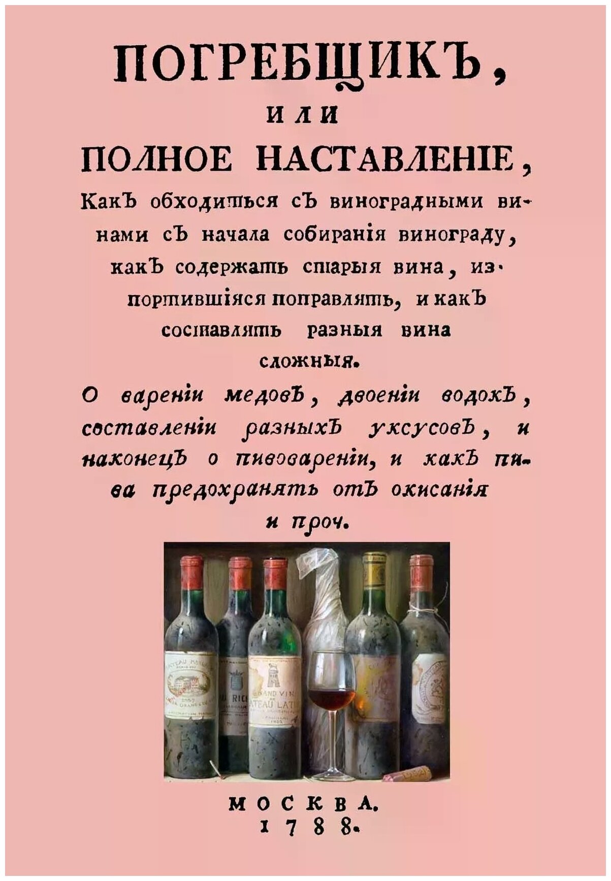 Репринт с издания. Москва 1788. Первая в России книга по виноделию. Старинные приемы и рецепты.