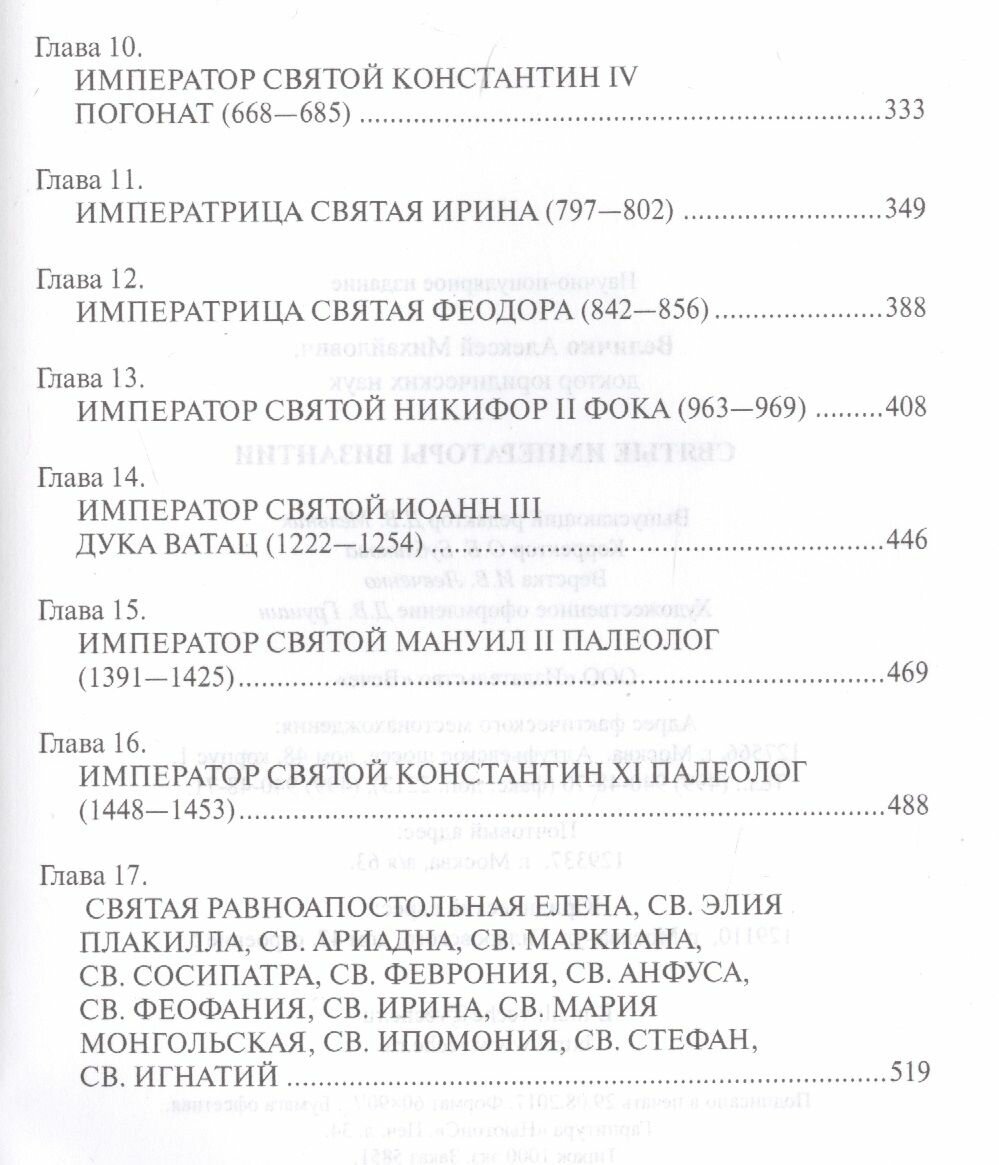 Настоящая книга посвящена жизнеописанию и трудам прославленных Церковью византийских императоров и императриц, правителей этого феноменального государства, прародины христианской цивилизации, а также святых царственных отпрысков этих семей. Предлагаемое сочинение содержит обильный исторический материал, который может быть использован в качестве справочного, включает в себя иконографические изображения всех прославленных царственных персон Византии.Книга предназначена для широкого круга читателей, интересующихся историей Византии, Церкви и Средних веков, студентов исторических и юридических факультетов и семинарий.