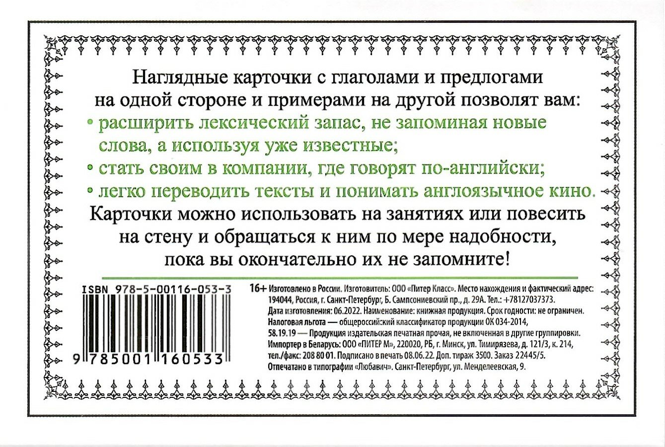 Наглядные карточки с глаголами и предлогами на одной стороне и примерами на другой позволят вам: