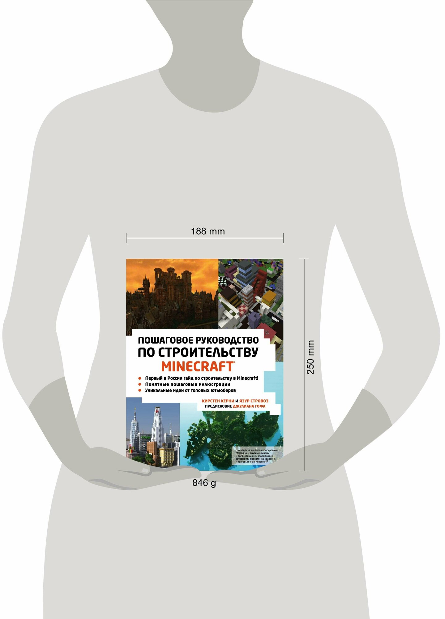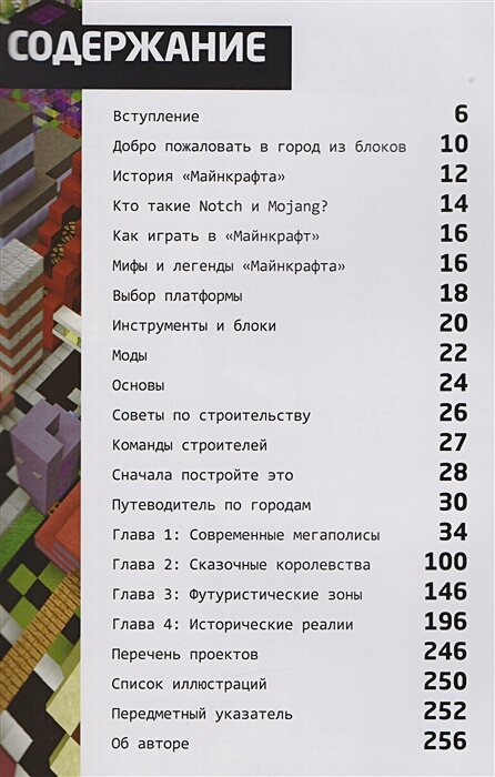 Внутри вы найдете понятные пошаговые инструкции в виде картинок и узнаете, как строить разные полезные сооружения: от фонарей и больших сфер до замков и домов будущего. Вы поймете основы строительства и сможете сами придумывать невероятные и сложные конструкции.