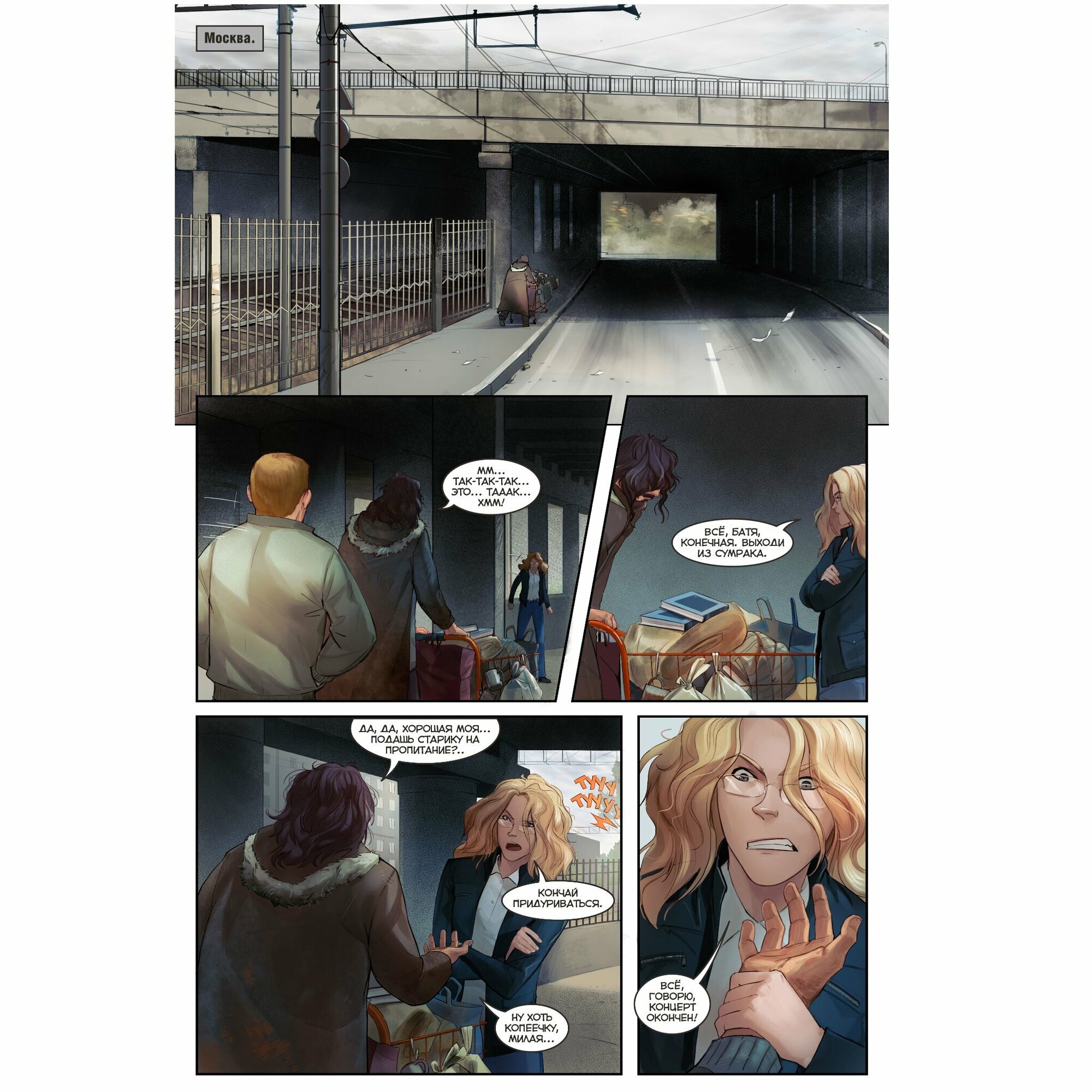 Мне очень нравится вся серия "экслибриум". Высокое качество печати, отличная графика , интересная история и яркие персонажи. Но в данном выпуске меня слегка утомила игра "переверни комикс". Хочется читать, а не вертеть в руках издание в поисках нужной стороны. И Константин Тарасов по сравнению с другими иллюстраторами мне не понравился (что очень субъективно, но я просто молилась, чтоб он больше ничего не иллюстрировал)