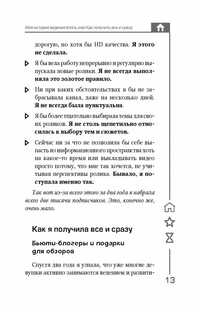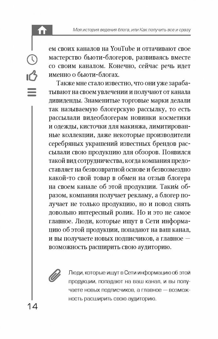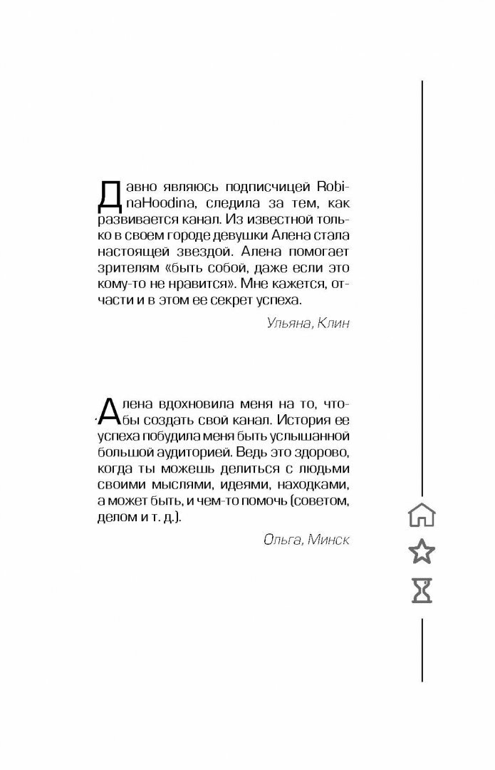 Робина Гудина (RobinaHoodina) - автор популярного блога, который набрал более 110 000 000 просмотров на YouTube! Это книга о том, как сделать канал успешным, популярным и прибыльным. Вы узнаете, как найти свою нишу и "зацепить" аудиторию, как стать лидером мнений, набрать подписчиков и заработать на этом, получить все "плюшки" блогерства! Но у популярности есть и оборотная сторона - хейтеры, необоснованная критика, зависть и т. д. Если вы готовы быть на виду, вести образ жизни звезды, то эта книга научит вас решать проблемы, с которыми сталкивается любой блогер.