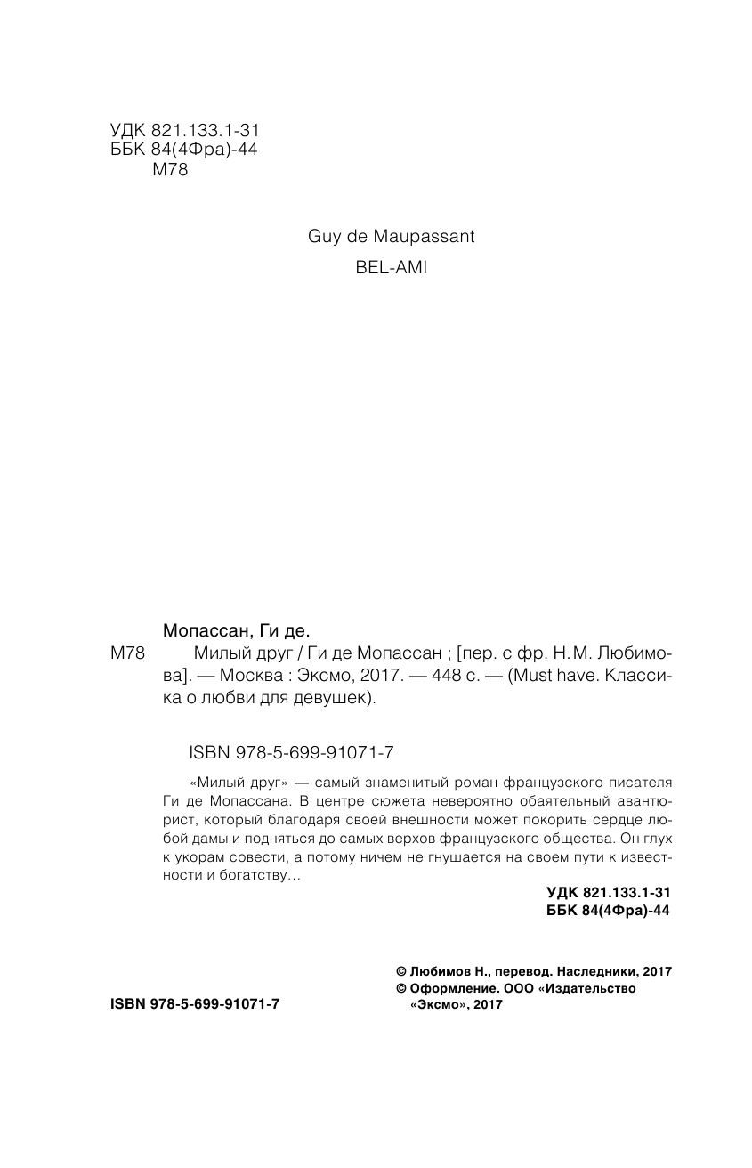 Книга: Милый друг (Мопассан Ги де , Любимов Николай Михайлович (переводчик)); Эксмо, 2017