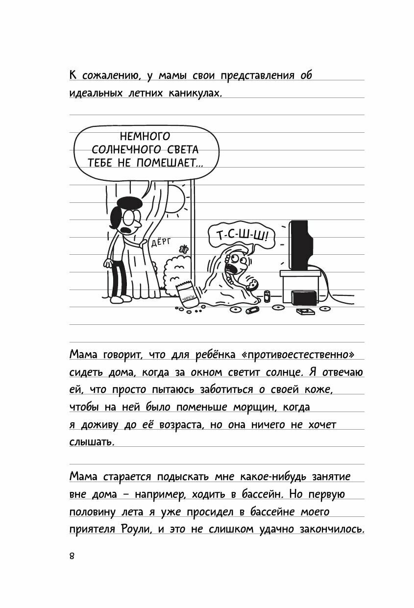 Наступило лето, а Грег Хэффли сидит дома с задёрнутыми шторами и играет в приставку день и ночь напролёт. Это и есть, по его мнению, идеальные летние каникулы! Но что поделать, если мама Грега не одобряет его увлечений и пытается придумать "интересные занятия" для сына. Удастся ли ему настоять на своём или лето будет безнадёжно испорчено?