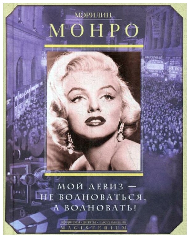 «Мой девиз - не волноваться, а волновать!» - это компактная книга в твердом переплете, состоящая из двух частей. Первая ее часть - мини биография актрисы, сжато рассказывающая о ее рождении, карьере, замужествах, и смерти. Вторая глава книги - набор цитат Мэрилин Монро. Цитаты разделены по тематике - о любви, о дружбе, о мужьях, о карьере, о красоте и сексе и многие другие. -