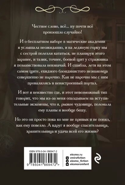 Честное слово, всё... ну почти всё произошло случайно! И о бесплатном наборе в магические академии я услышала неожиданно, и на ледяную горку мы с сестрой полезли кататься, не планируя этого заранее, и тазик, точнее боевой щит, у стражника я позаимствовала невзначай. И сшибла, летя на этом самом щите, ехидного блондинистого незнакомца совершенно не нарочно. Как не нарочно мы с ним провалились в ненастроенный портал.