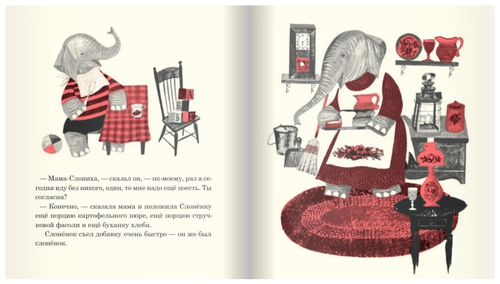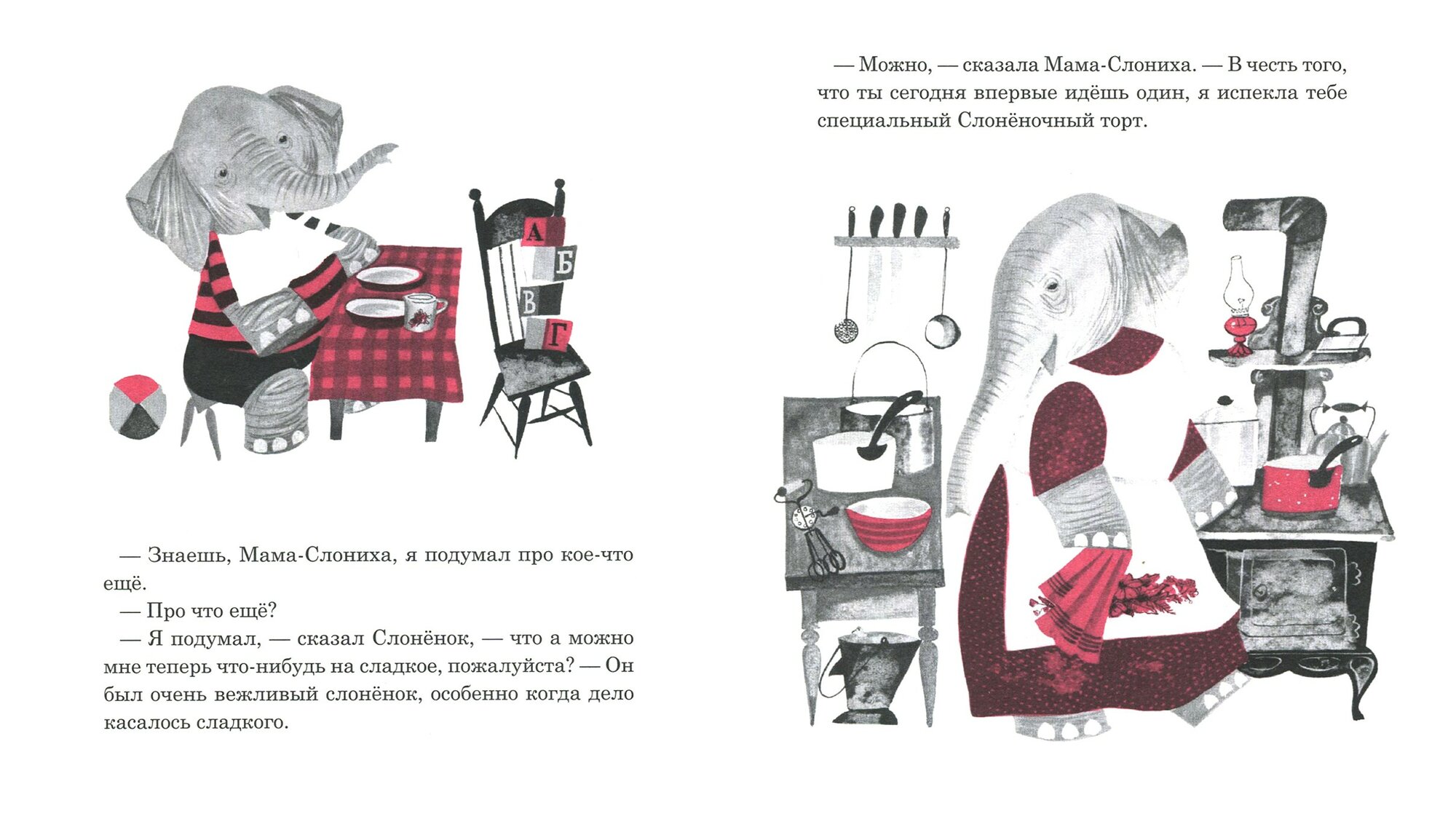 «Храбрый слоненок» немного проще «Слоненка в Китае», думаю, что самый подходящий возраст – это 3-5 лет. Правда, родители и бабушки-дедушки тоже получат огромное удовольствие от чтения этой книжки. -