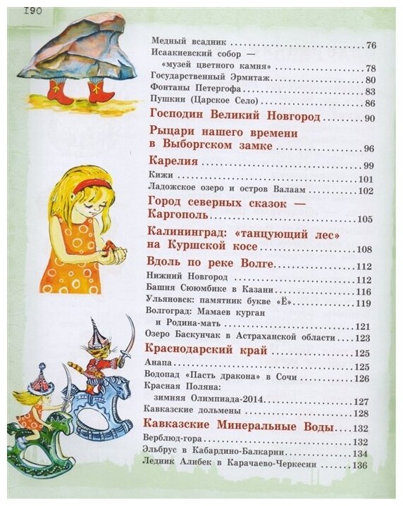 Получили эту книгу в подарок и очень довольны. Сейчас очень важны книги, которые могут в доступной и красочной форме знакомить детей с родной страной. В книге хорошие иллюстрации, понятный крупный шрифт. Информация про разные города подана интересно и увлекательно в рассказах кота и девочки. После этой книги ребенок выучил названия многих русских городов и их интересные места.
