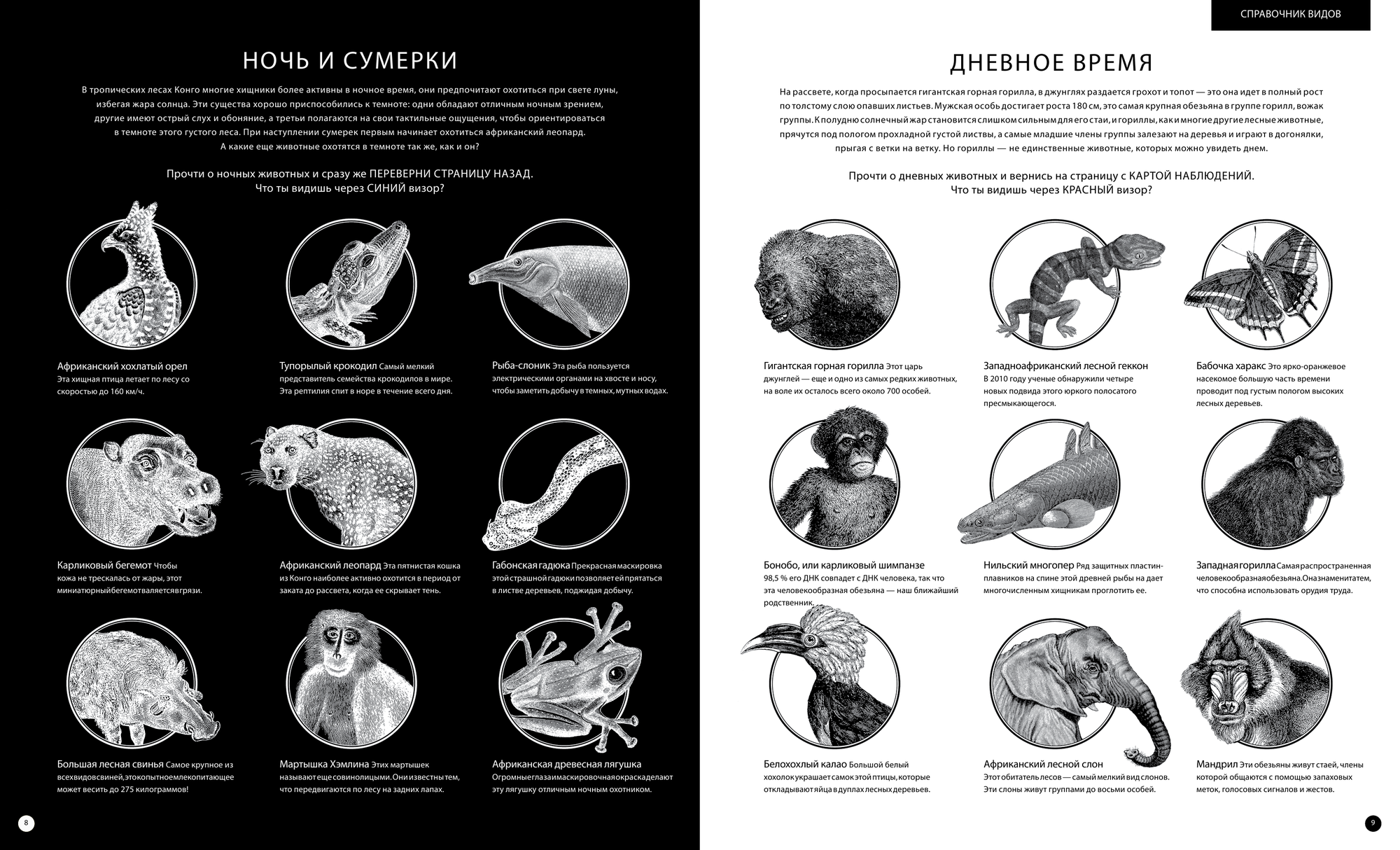 Обычно такие энциклопедии воспринимаются как что-то скучное и банальное, но фишка с трехцветным визиром все меняет - одно движение руки и иллюстрации уже совсем другие!