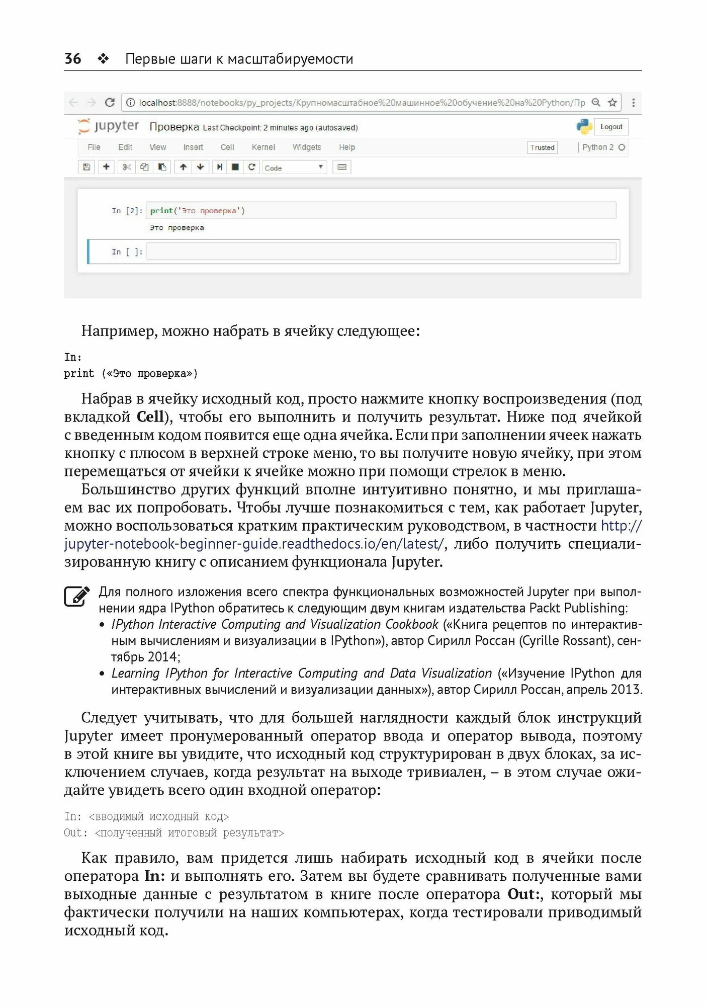 Главная задача настоящей книги состоит в том, чтобы предоставить способы применения мощных методов машинного обучения с открытым исходным кодом в крупномасштабных проектах без привлечения дорогостоящих корпоративных решений или больших вычислительных кластеров. Описаны масштабируемое обучение в Scikit-learn, нейронные сети и глубокое обучение с использованием Theano, H2O и TensorFlow. Рассмотрены классификационные и регрессионные деревья, а также обучение без учителя. Охвачены эффективные методы машинного обучения в вычислительной среде MapReduce на платформах Hadoop и Spark на языке Python.