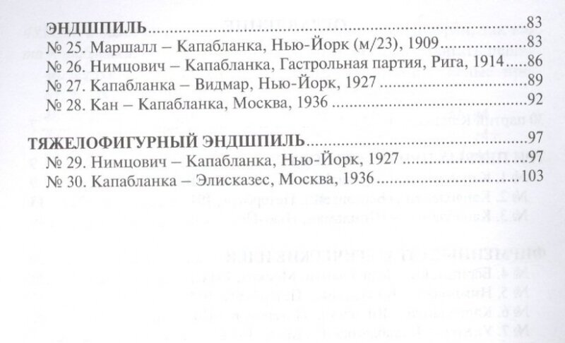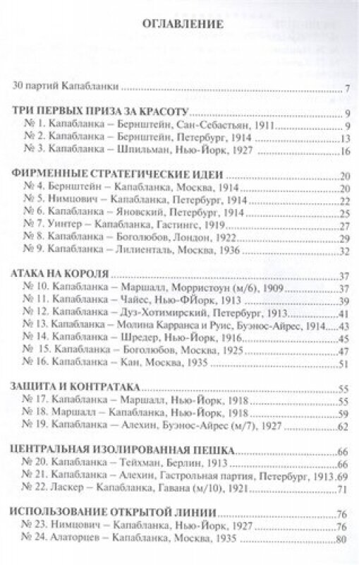 Творчество третьего чемпиона мира Хосе Рауля Капабланки является одной из ярчайших страниц шахматного искусства. О техническом совершенстве игры гениального кубинца, его непревзойденной интуиции и быстроте мышления слагались легенды. Капабланка достиг в своем творчестве гармоничного сочетания глубокой позиционной стратегии и комбинационного мастерства. Даже в эндшпиле техника "шахматного автомата" была расцвечена "маленькими" комбинациями.30 партий Капабланки с его собственными комментариями, отличающимися предельной ясностью и лаконичностью, составляют "квинтэссенцию" творческих достижений великого маэстро. Они, без сомнения, доставят огромное эстетическое удовольствие любителям шахмат.В учебных целях партии разбиты по тематическим разделам, каждому из которых предпослано краткое вступление.