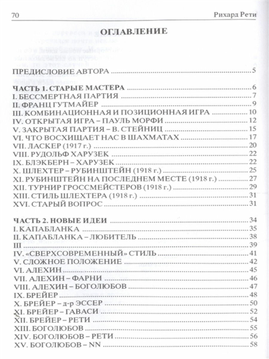 Книга Рихарда Рети "Новые идеи в шахматной игре" очень поучительна,она была написана еще в 1922 году (в часть книги были включены статьи Рети 1917-1919 г.г.).До сих пор книга имеет хорошие отзывы многих известных шахматистов.Книга интересна тем,что в ней показана история перехода от старых идей в шахматах к новым идеям того времени.В некоторых местах виден юмор автора.Для широкого круга любителей шахмат,интересующихся историей и философией развития шахмат того времени.