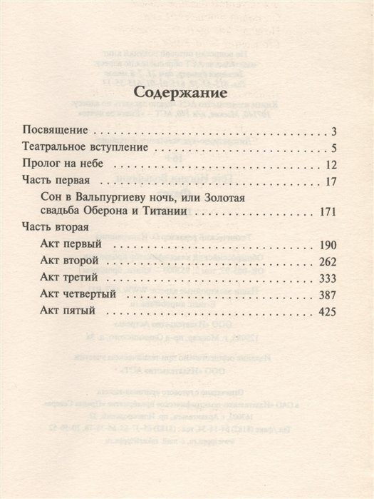 Бюджетный вариант в серии "Зарубежная классика" - твердый переплет, цветное тиснение обложки и тонкие страницы из газетной бумаги. Полное издание в прекрасном переводе Холодовского. Обычно ограничиваются чтением только первой части - о трагической судьбе Маргариты, забывая о второй, более сложной: престарелый Фауст, проживший вторую жизнь и растерявший молодость в попытках найти счастье в любви самой красивой женщины Земли - Елены Троянской, пытается изменить социальные устои мира и терпит фиаско. Старческая слепота милосердно скрывает от него пустую тщету всех его приказов и распоряжений и крах благих начинаний. Социальный эксперимент провалился. Тем не менее, несмотря на формально выполненный контракт, Мефистофель оказывается посрамлен и душа Фауста по смерти удостаивается райской обители за благие помыслы и деяния. Вторая часть трагедии сложнее для чтения и требует большей эрудиции и познаний. Будучи создана Гете уже в преклонном возрасте, впервые была опубликована посмертно.