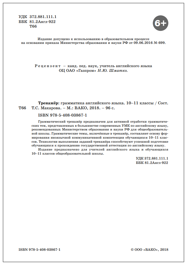 Английский язык. 10-11 классы. Грамматический тренажёр. (Макарова Татьяна Сергеевна (составитель)); Вако, 2023