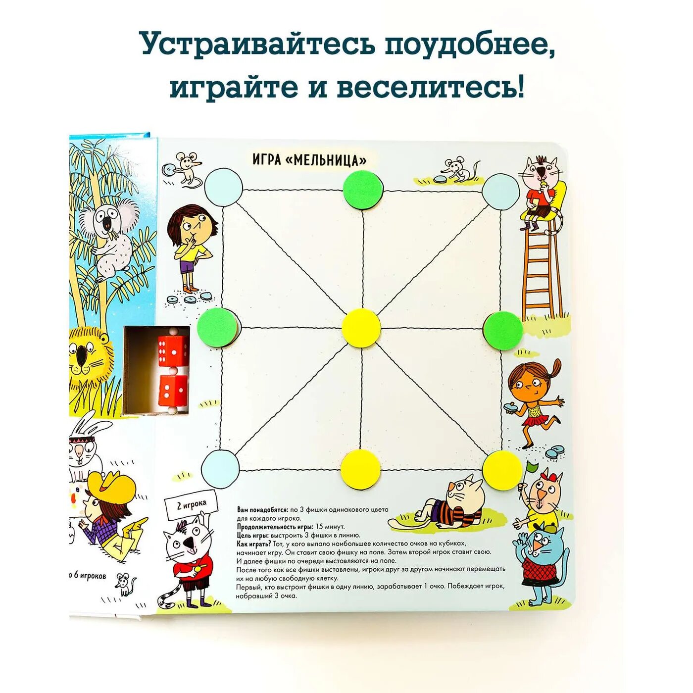 Перед вами не просто книга, а целая сокровищница увлекательных игр. Такого формата вы ещё не видели: фишки, кубики, понятные правила - всё в одной книге, которую удобно взять с собой в гости или в дорогу. Устраивайтесь поудобнее, играйте и веселитесь!