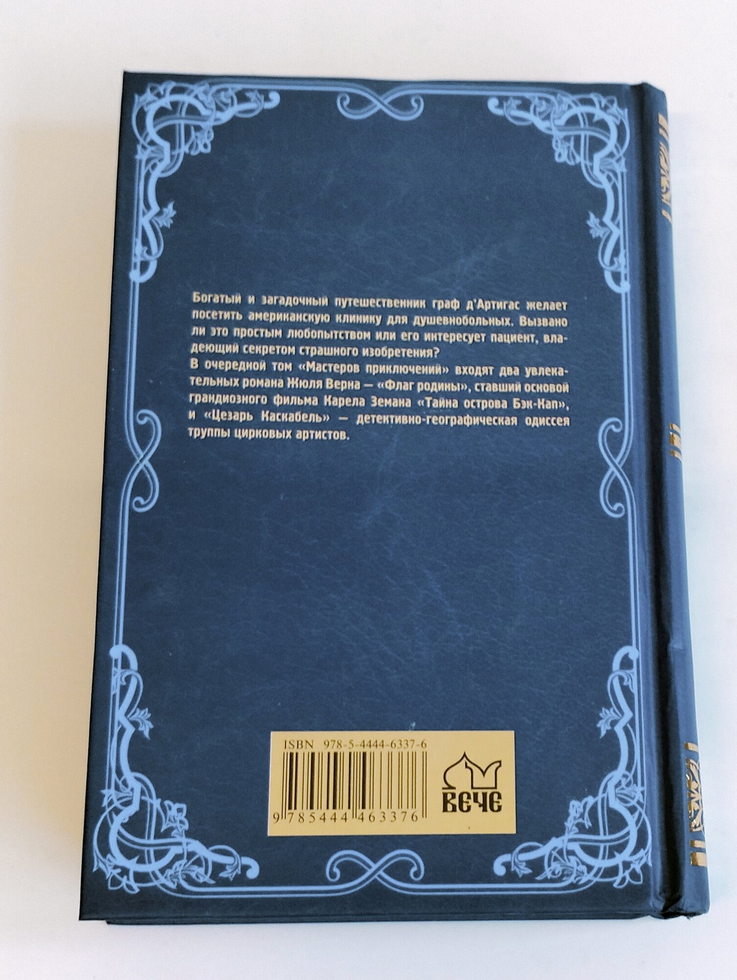 Богатый и загадочный путешественник граф д'Артигас желает посетить американскую клинику для душевнобольных. Вызвано ли это простым любопытством или его интересует пациент, владеющий секретом страшного изобретения? В очередной том "Мастеров приключений" входят два увлекательных романа Жюля Верна - "Флаг родины", ставший основой грандиозного фильма Карела Земана "Тайна острова Бэк-Кап", и "Цезарь Каскабель" - детективно-географическая одиссея труппы цирковых артистов.