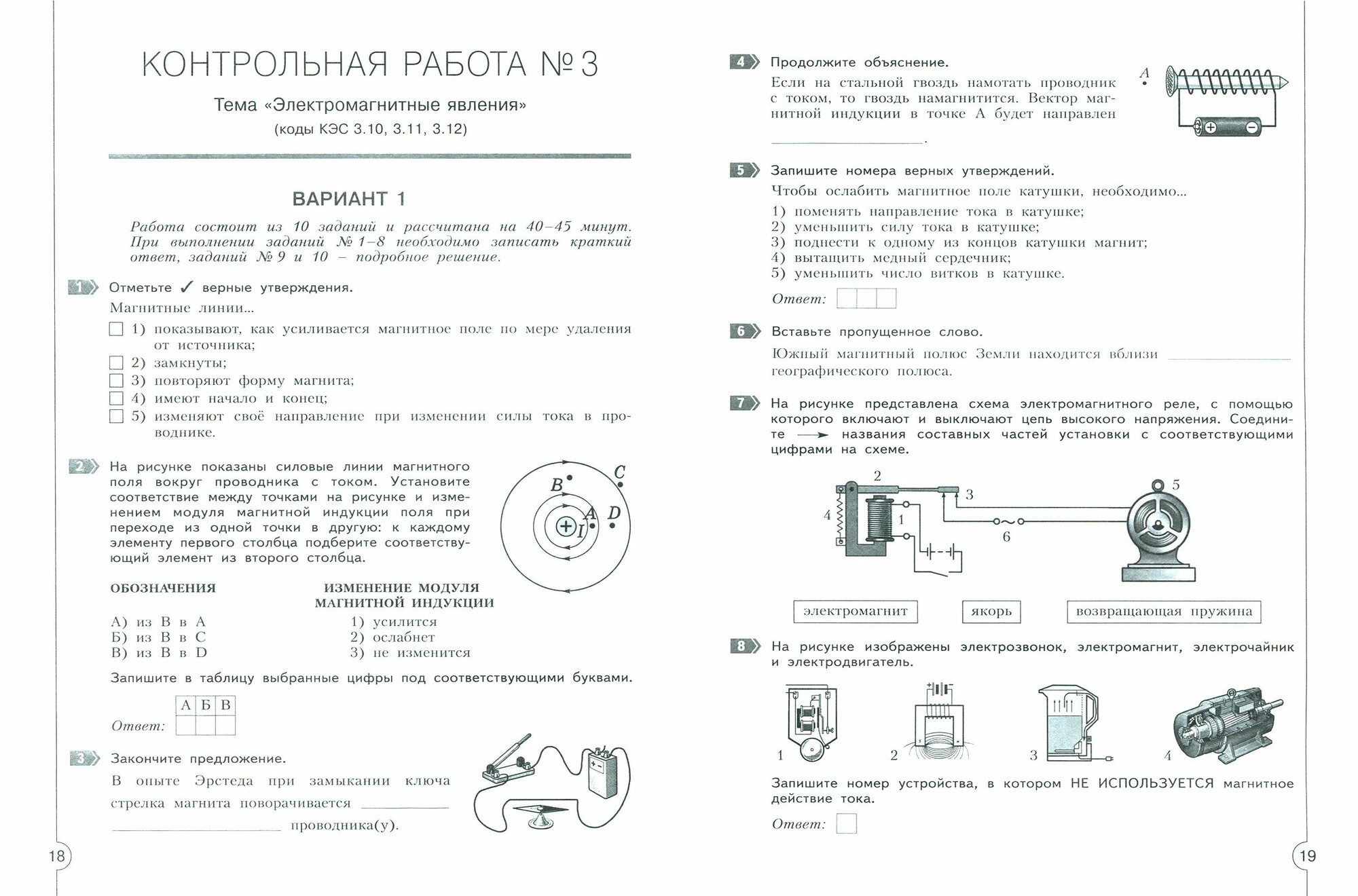 Тетрадь контрольных тестовых работ предназначена для мониторинга предметных достижений учащихся по физике и является частью серии тетрадей, в которую входят аналогичные издания по русскому языку, алгебре, геометрии, биологии, химии, истории, обществознанию. Материалы тетради позволяют проверить знания учащихся по основным темам курса 8 класса, а также организовать итоговый контроль. Контрольные тестовые работы представлены в двух вариантах. Все задания разработаны на основе контролируемых элементов содержания, определенных кодификатором элементов содержания для проведения ОГЭ по физике, подготовленным ФИПИ. Коды проверяемых КЭС представлены в начале каждой тестовой работы. В конце тетради размещен краткий методический материал для педагога: планы работ и ответы на задания. Тетрадь разработана к учебнику А.В. Перышкина "Физика", 8 класс. Вместе с тем ее материалы могут использоваться и при работе с другими УМК.