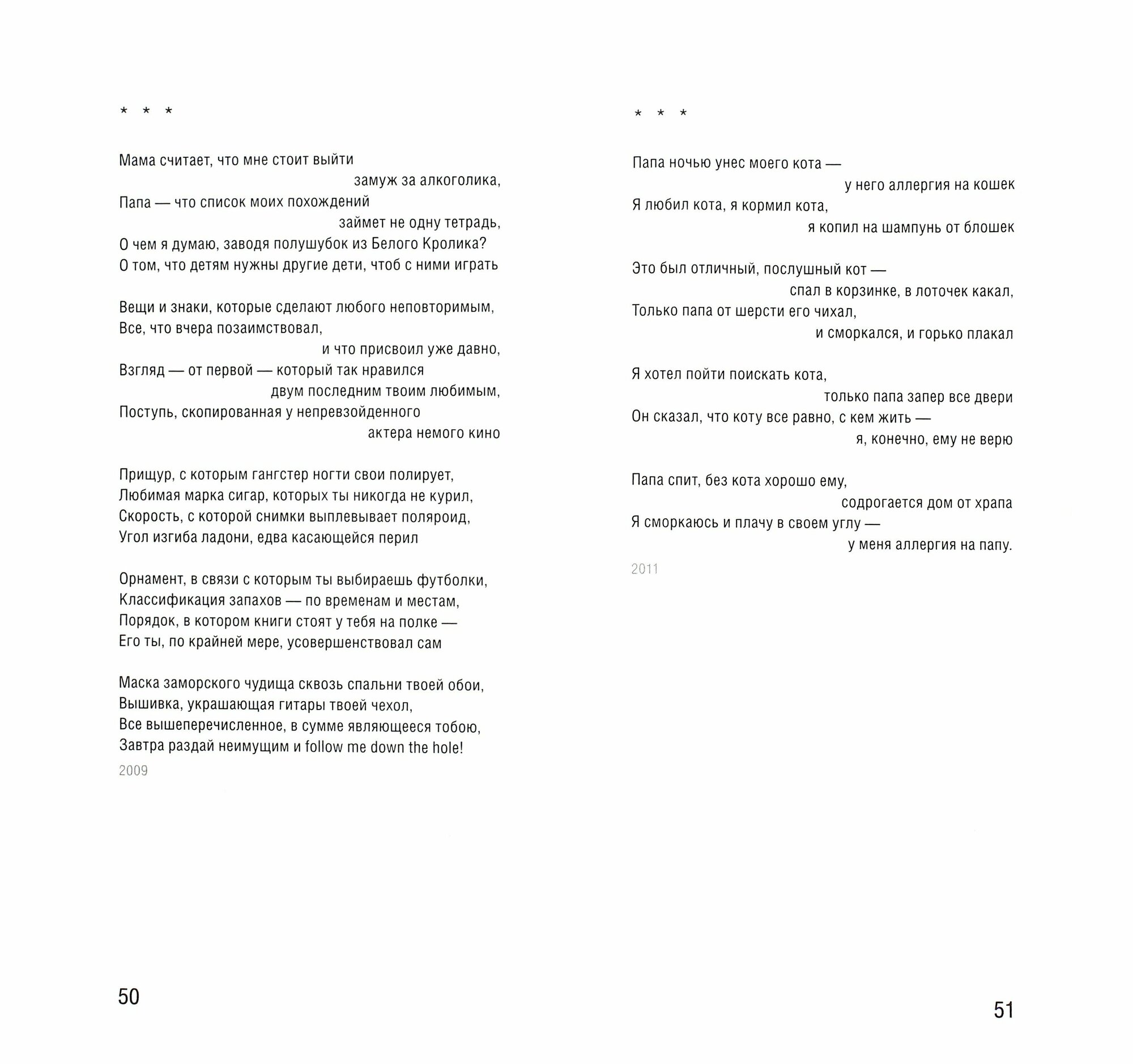 Если говорить о нынешней русской поэзии – о поисках новых веяний, о нестандартности, о затрагивании избитых тем под новым углом, о затрагивании еще непривычных читателю тем – можно без колебаний обращаться к этой книге.
