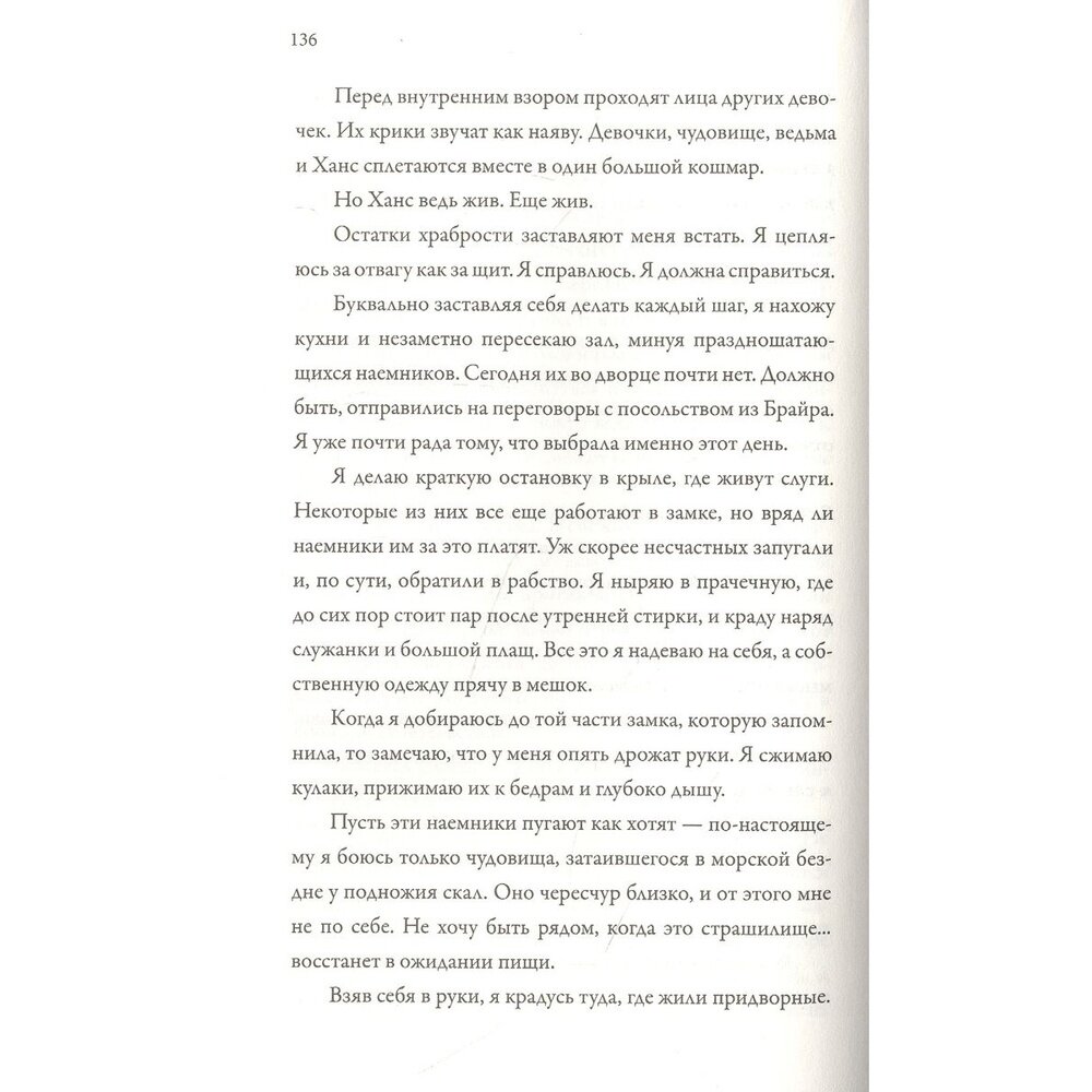Очень интересная книга. Сначала на фоне первой( "Чудовище") показалась более слабой, но затем захватила полностью. Кроме захватывающего сюжета ставит очень важные нравственные проблемы, а особенность повествования от лица девочки, да еще и использование глаголов в настоящем времени (Я иду...Я вижу... и т.д.) создает ощущение присутствия там, рядом с нею, и прямо сейчас)) Издание очень качественное. Из минусов - мелковатый шрифт( впрочем, это компенсирует большой межстрочный интервал) и отсутствие иллюстраций( их можно найти только на обложках и на форзаце).