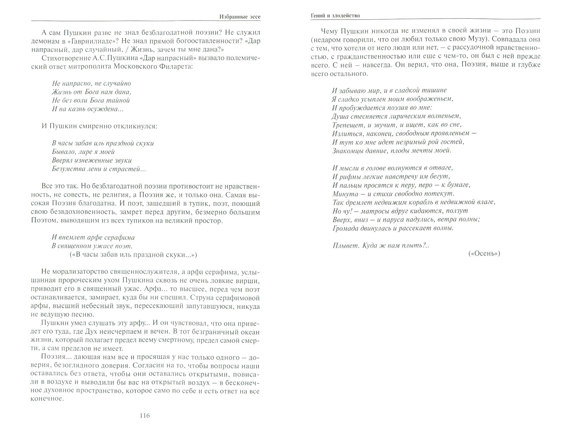 В книгу вошли эссе о Достоевском - "Истина и её двойники", о Пушкине - "Гений и злодейство", а также исследование о творчестве Цветаевой, её поэзии, её взглядов на искусство - "Огонь и пепел" (духовный путь М.И. Цветаевой).
