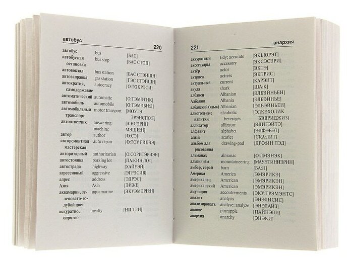 Все слова в англо-русской части снабжены транскрипцией русскими буквами, причем транскрипция английских слов дается и в русско-английской части.
