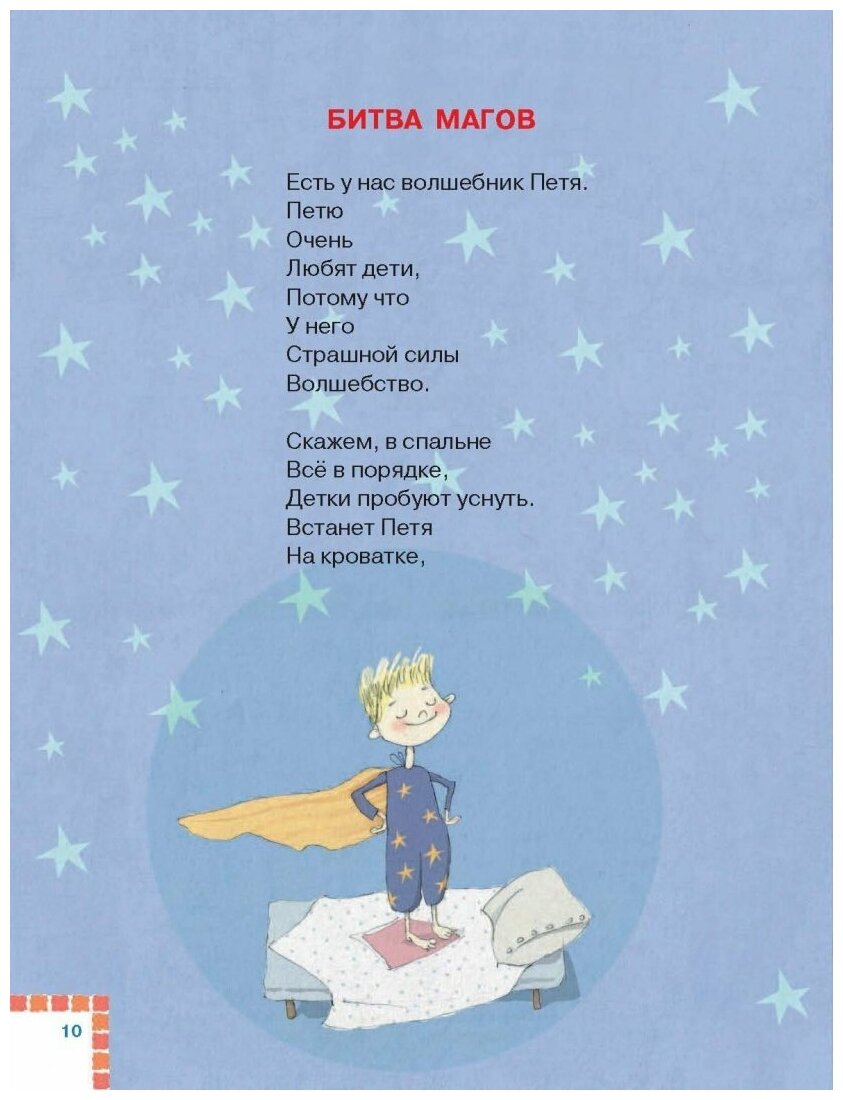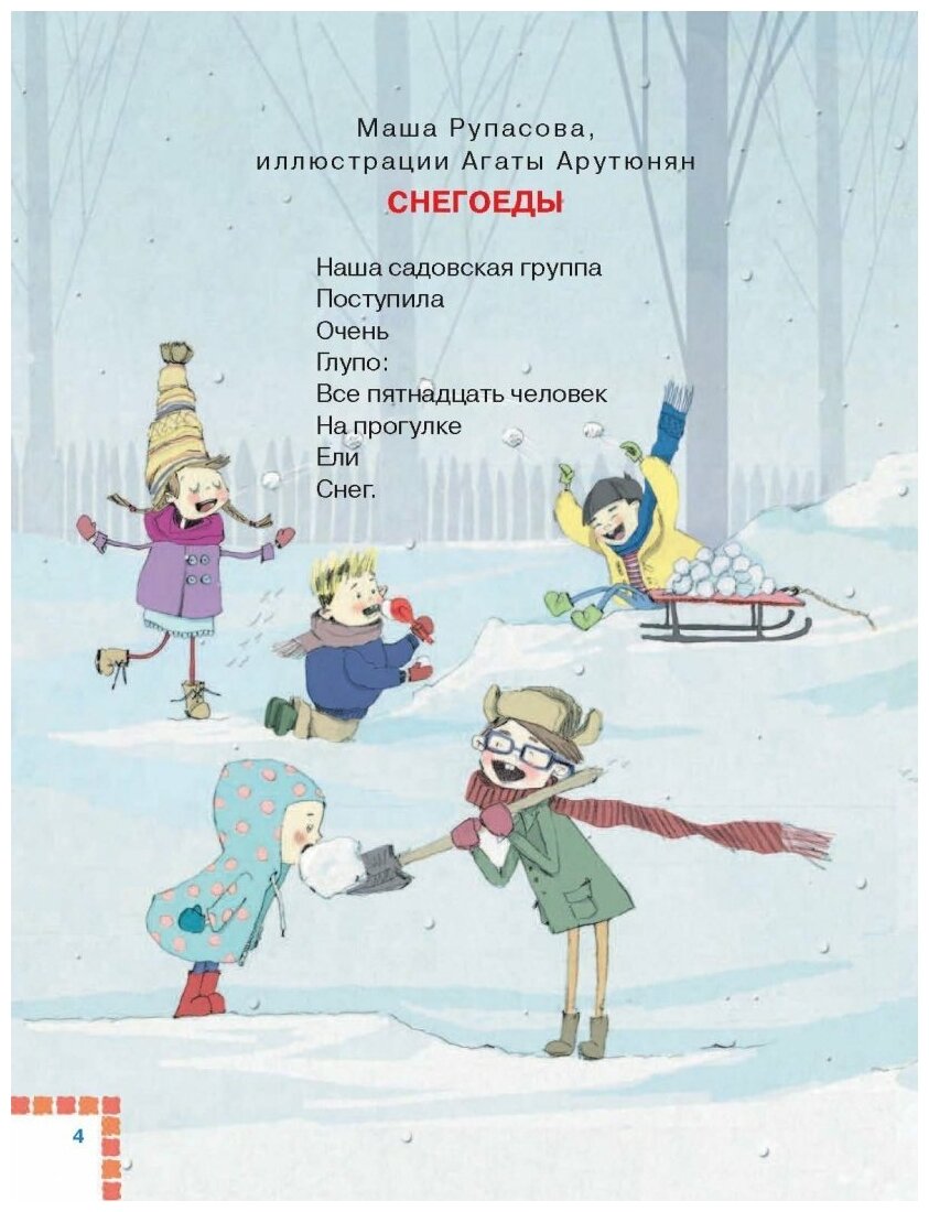 В сборнике стихи современных детских поэтов. Три автора - три иллюстратора. Сборник хороших, веселых стихов. Ребенок шести лет прочел самостоятельно за два вечера. Книгу рекомендую. Фото почему-то не загружаются на страницу отзыва. Некоторые стихи ребенок читает по много раз подряд. Рифмы необычные, но очень интересно.