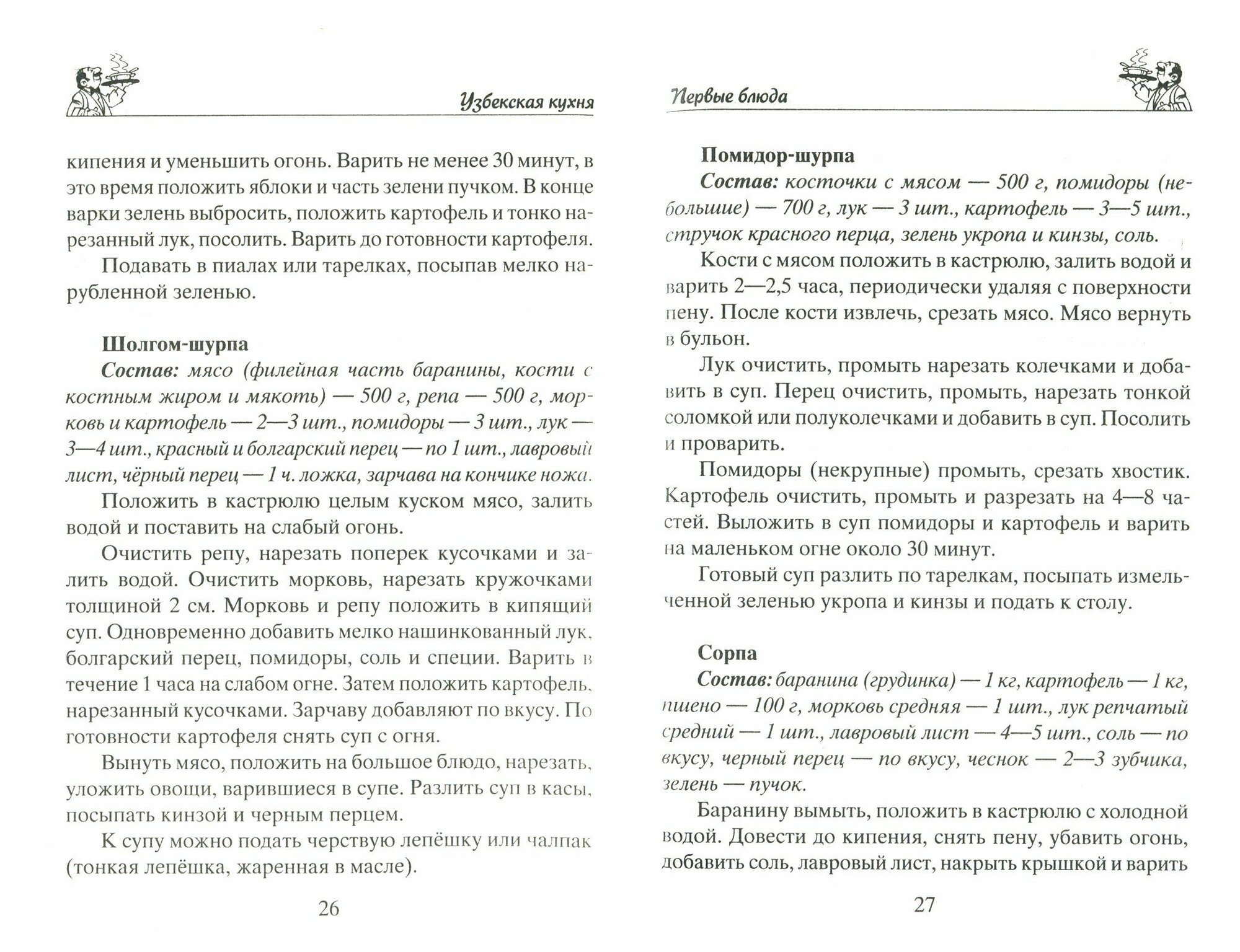 Вас ждёт настоящий праздник вкуса! Лагман и машхурда, пиева и ерма, ширкавак и чалоп, димлама и долма - это не слова заклинай, а удивительно вкусные, сытные и простые в исполнении узбекские блюда. Естественно, нельзя представить узбекскую кухню без плова, и мы предлагаем вам полтора десятка рецептов этого всенародно любимого блюда. А еще чебуреки, самса, манты, ханум и конечно же напитки и сладости…