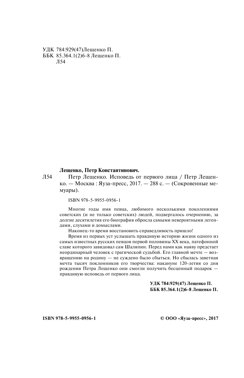 Петр Лещенко. Исповедь от первого лица (Петр Константинович Лещенко); Автор, 1951