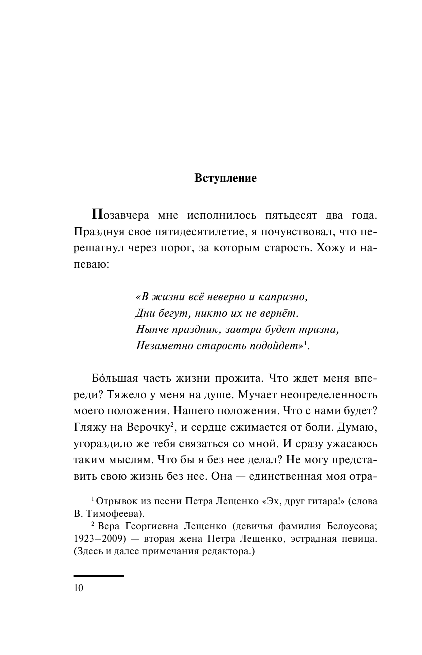 Многие годы имя певца, любимого несколькими поколениями советских (и не только советских) людей, подвергалось очернению, за долгие десятилетия его биография обросла самыми невероятными легендами, слухами и домыслами.Наконец-то время восстановить справедливость пришло! Время из первых уст услышать правдивую историю жизни одного из самых известных русских певцов первой половины ХХ века, патефонной славе которого завидовал сам Шаляпин. Перед нами как наяву предстает неординарный человек с трагической судьбой. Его главной мечте – возвращению на родину – не суждено было сбыться. Но сбылась заветная мечта тысяч поклонников его творчества, накануне 120-летия со дня рождения Петра Лещенко они смогли получить бесценный подарок –правдивую исповедь от первого лица.
