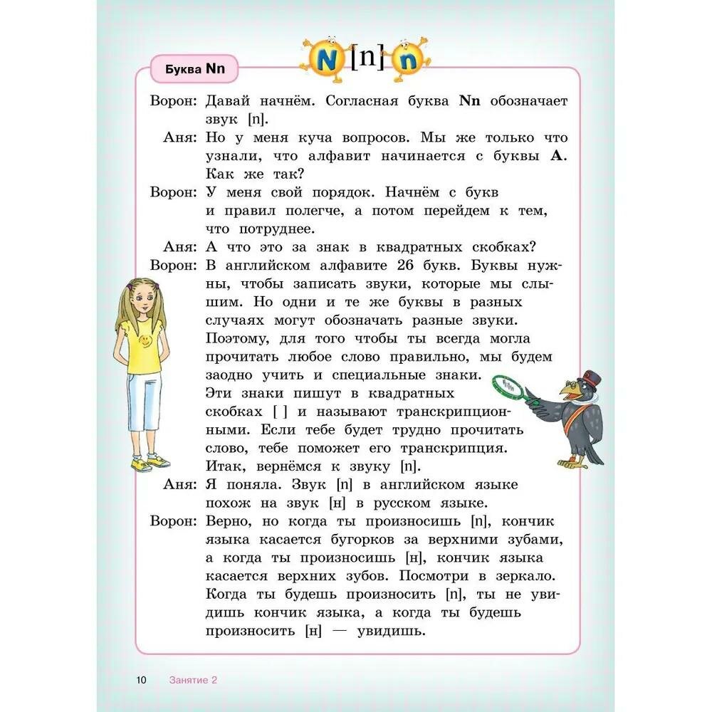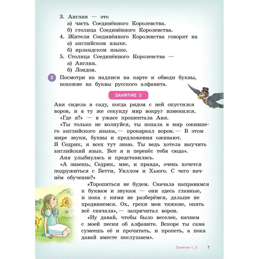 Книга удобна тем, что в ней есть подробные и точные объяснения правил чтения по-русски, то, что надо для начальной школы. А в аудиоприложении, которое скачивается с сайта, записаны уроки, все упражнения на чтение, а еще есть песни и стихи и минусовки, так что родители всегда могут проверить правильно ли ребенок читает, а ребенок может послушать образцы чтения с хорошим произношением и петь песни и учиться читать стихи. Уроки в книге читаются как художественные рассказы, в них идет речь о приключениях в Англии девочки и волшебного ворона. Тот случай, когда сын сам читает книгу и не приходится ему напоминать о ней. Очень удобно!