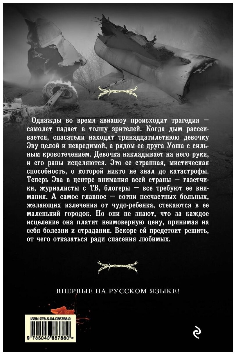 ?Однажды, во время авиашоу, происходит трагедия — самолет падает в толпу зрителей. Когда дым рассеивается, спасатели находят тринадцатилетнюю девочку Эву целой и невредимой, а рядом ее друга Уоша с сильным кровотечением. Девочка накладывает на него руки, и его раны исцеляются. Это ее странная, мистическая способность, о которой никто не знал до катастрофы. Теперь Эва в центре внимания всей страны — газетчики, журналисты с ТВ, блогеры — все требуют ее внимания. А самое главное — сотни несчастных больных, желающих излечения от Чудо-ребенка, стекаются в ее маленький городок. Но они не знают, что за каждое исцеление она платит неимоверную цену, принимая на себя болезни и страдания. Вскоре ей предстоит решить, от чего отказаться ради спасения любимых. Впервые на русском языке!