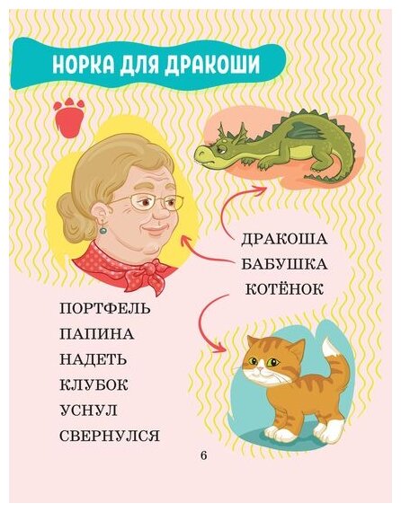 Перед каждым рассказом даны сложные для чтения слова из текста. Они отмечены специальным значком. Перед тем как приступить к чтению текста, надо прочитать их 2-3 раза. Тогда, встретившись в рассказе, они вызовут меньше затруднений. Картинки в рассказе не только заменяют некоторые слова, но и дают ребёнку возможность отдохнуть, сделать чтение более лёгким и приятным.