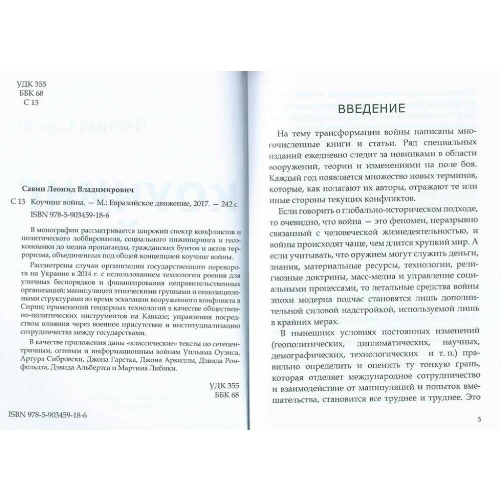 Книга: Коучинг война (Леонид Владимирович Савин); Евразийское Движение, 2017