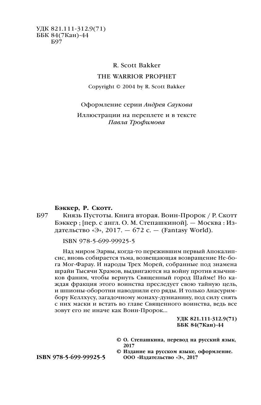 Князь Пустоты. Книга вторая. Воин-Пророк (Бэккер Р. Скотт); Издательство Fanzon, 2017