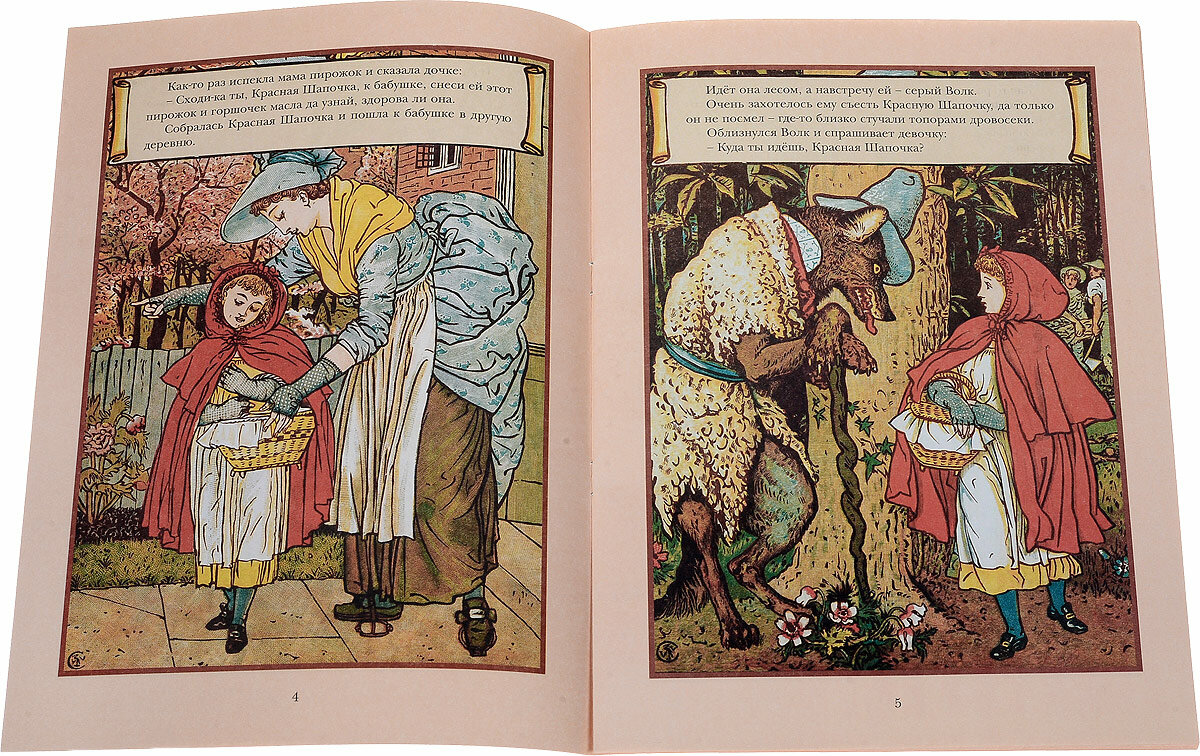 Дорогие читатели! Перед вами сказка Шарля Перро "Красная Шапочка", иллюстрации к которой выполнил замечательный английский художник Уолтер Крейн (1845-1915). Он проиллюстрировал более 50 книг для детей, став одним из самых популярных художников книги. Крейн считал, что дети предпочитают видеть точные линии, чётко обозначенные фигуры и формы, яркие насыщенные цвета. Своими иллюстрациями он стремился поражать воображение детей. Вместе с художником Эдмундом Эвансом он создал одну из первых в истории цветных детских книг. Графический стиль Крейна отражал его интерес к искусству Ренессанса, что проявилось, в первую очередь, в изображении костюмов и интерьеров. Он также испытал значительное влияние японской гравюры с её линеарностью и локальным цветовым решением, что, по мнению художника, абсолютно соответствовало особенностям детского восприятия.