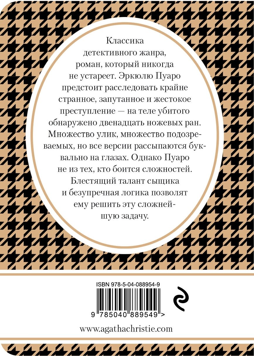 Эркюлю Пуаро предстоит расследовать крайне странное, запутанное и жестокое преступление — в купе по соседству обнаружен труп человека. На теле убитого обнаружено двенадцать ножевых ран. Множество улик, множество подозреваемых, но все версии рассыпаются буквально на глазах. Однако Пуаро не из тех, кто боится сложностей. Блестящий талант сыщика и безупречная логика позволят ему решить эту сложнейшую задачу.