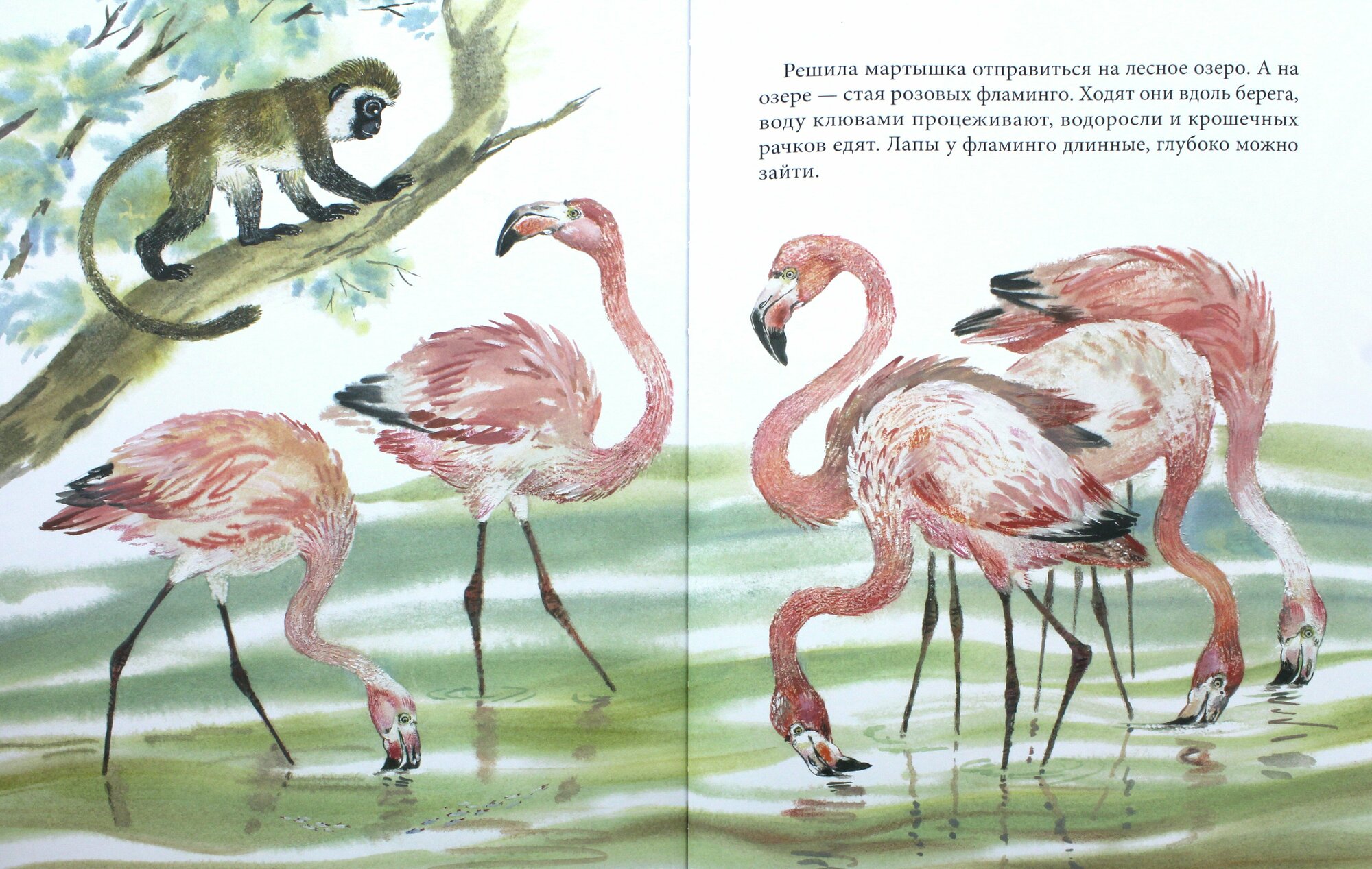 В данной книге малыши познакомятся с удивительными представителями животного мира тропических джунглей. Любопытная мартышка отправляется в увлекательное путешествие, за время которого встречается с самыми разными существами: крокодил, птицы-носороги, окапи, леопард...