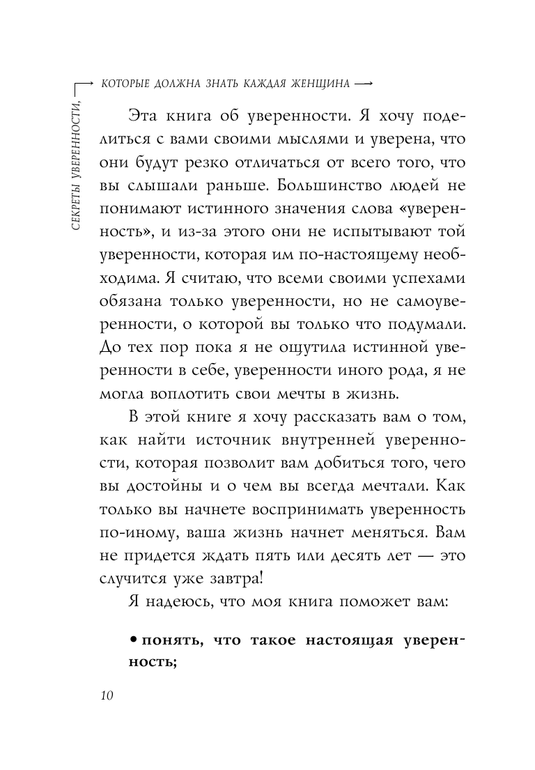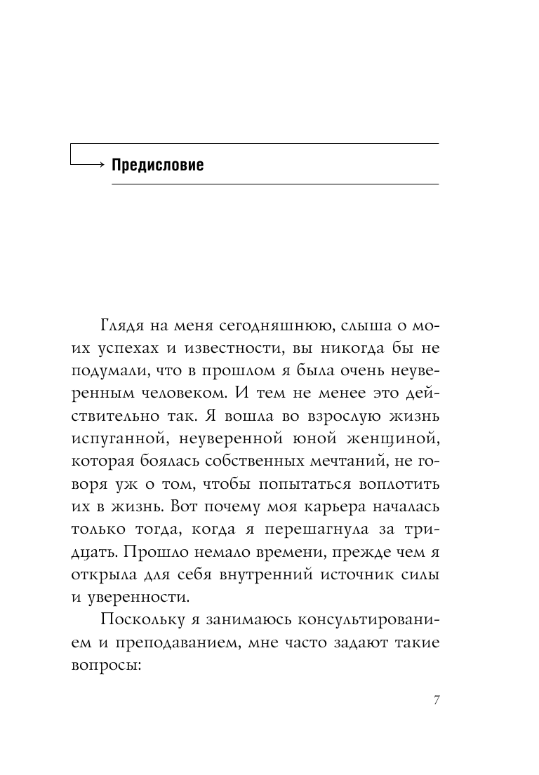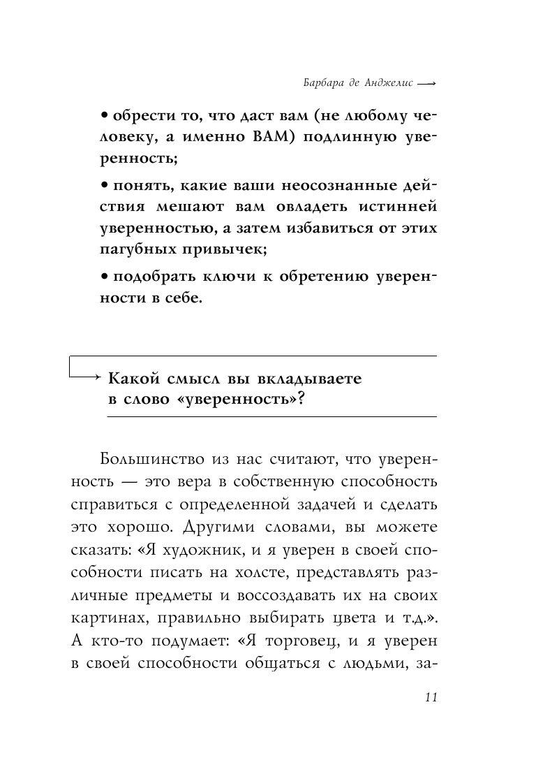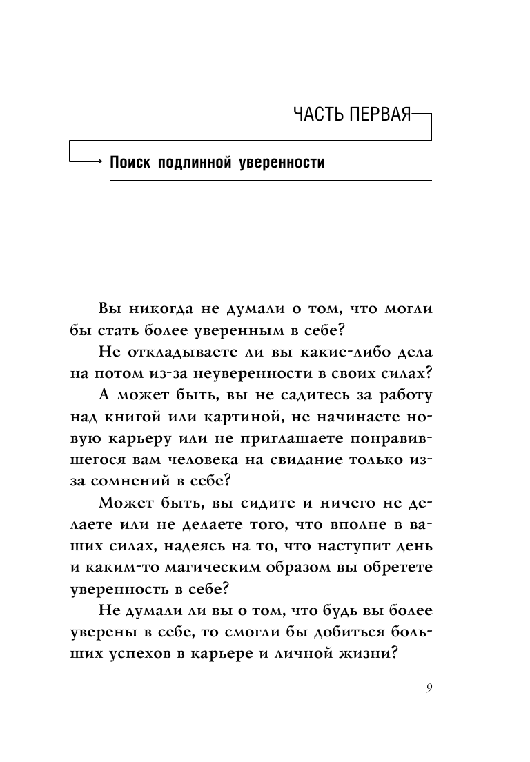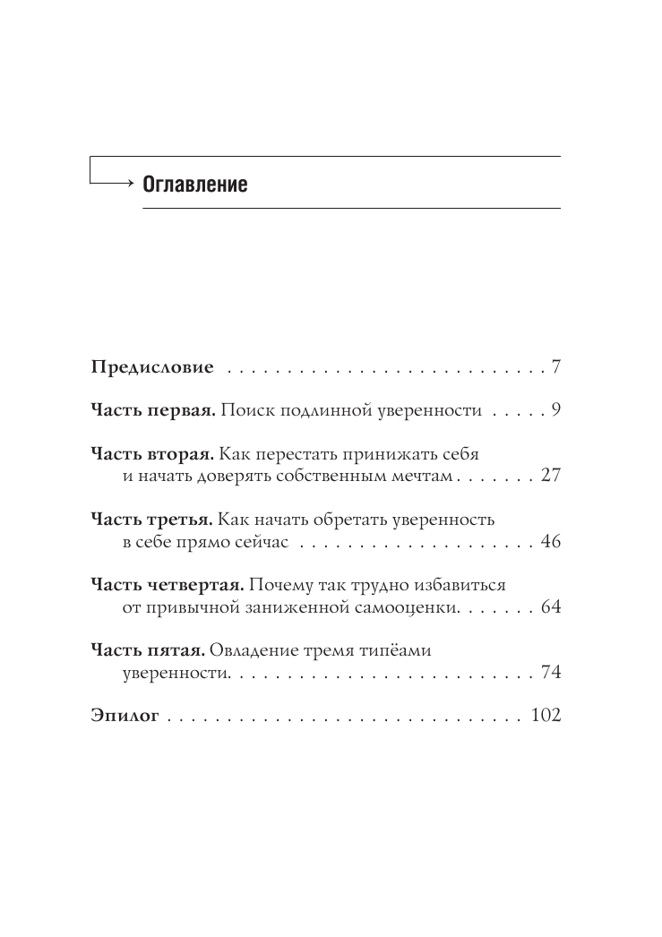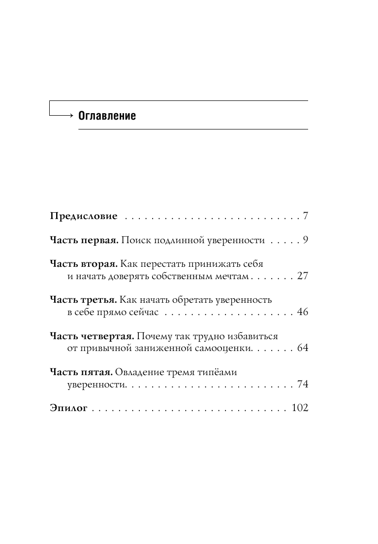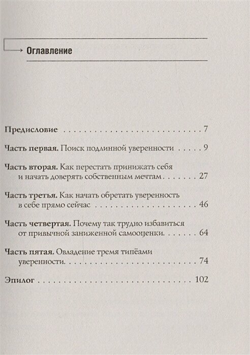 Автор просто и понятно раскрывает признаки разных типов неуверенности. И показывает шаги, которые приведут читателя к истинной уверенности и доверию к себе.