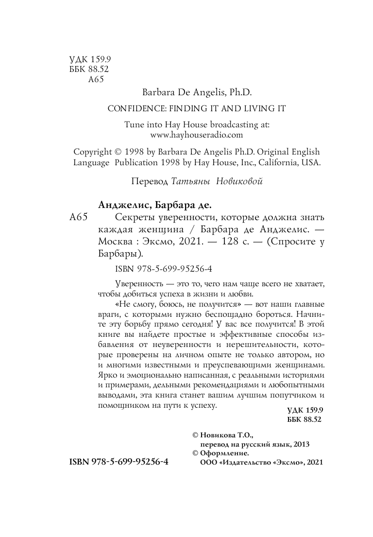 Секреты уверенности которые должна знать каждая женщина (Барбара де Анджелис); Эксмо, 1998