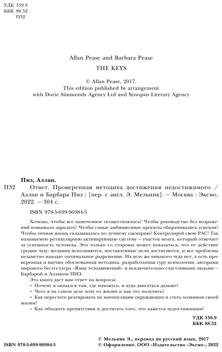 Ответ. Проверенная методика достижения недостижимого (Аллан Пиз, Барбара Пиз); Эксмо, БОМБОРА, 2025