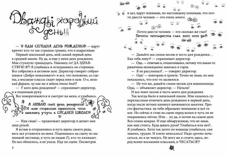 Десятилетняя дочь счастлива. Новая книга об Оде! Пусть последняя в серии, но все-таки - счастье есть. Отличная серия, очень нужная и важная для девочек предпереходного и переходного возраста. Отношения с родителями, друзьями, учителями, умение быть собой, выбор в разных ситуациях... Можно только рекомендовать эти книги для подростков. Дочь читает их с девяти лет и очень любит. Прикладываю страницы из начала и самого конца.