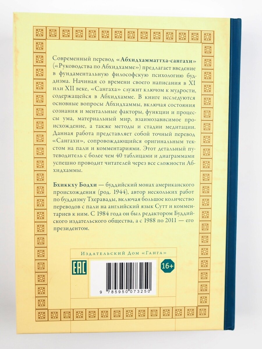 Современный перевод "Абхидхамматтха-сангахи" ("Руководства по Абхидхамме") предлагает введение в фундаментальную философскую психологию буддизма. Начиная со времени своего написания в XI или XII веке, "Сангаха" служит ключом к мудрости, содержащейся в Абхидхамме. В книге исследуются основные вопросы Абхидхаммы, включая состояния сознания и ментальные факторы, функции и процессы ума, материальный мир, взаимозависимое происхождение, а также методы и стадии медитации. Данная работа представляет собой точный перевод "Сангахи", сопровождающийся оригинальным текстом на пали и комментариями. Этот детальный путеводитель с более чем 40 таблицами и диаграммами успешно проводит читателей через все сложности Абхидхаммы.