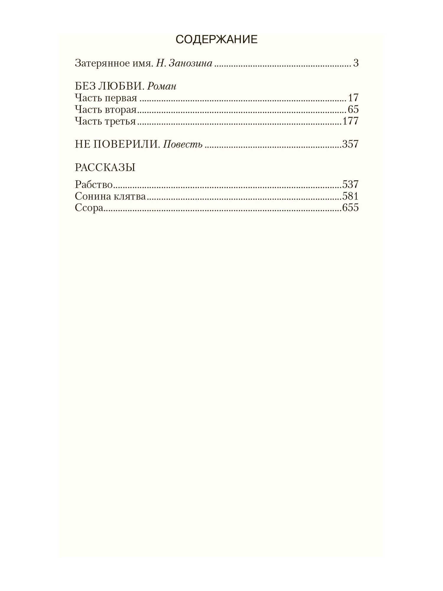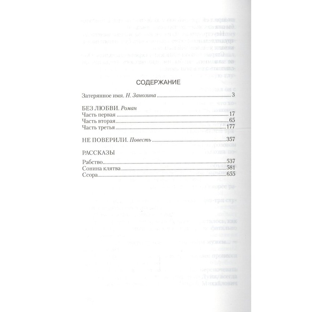 Сегодня Ольга Андреевна Шапир известна лишь узкому кругу читателей, хотя в начале XX века литературные энциклопедии России ставили ее имя в один ряд с выдающимися писателями Серебряного века. Основными темами произведений писательницы являются любовные и семейные отношения и различие женского и мужского чувства, где у первых оно бескорыстное и всеобъемлющее, а у вторых - сухое и ограниченное. В данное издание входят роман "Без любви", повесть "Не поверили" и три рассказа ("Рабство", "Сонина клятва", "Ссора"), которые позволят шире ознакомиться с творчеством писательницы.