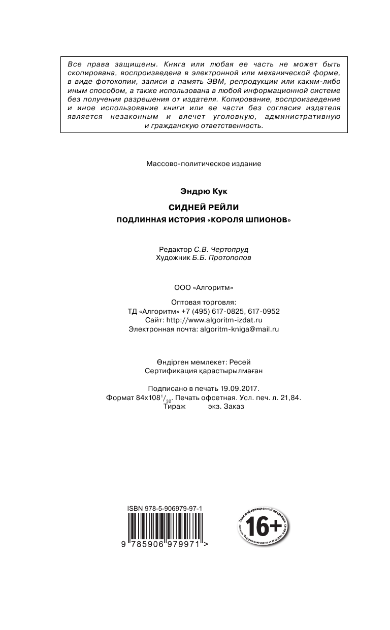 Сервис сравнения цен СкидкаГИД предлагает сравнить цены на товар «Книга: Сидней Рейли. Подлинная история "короля шпионов" (Эйлен Кук); Эксмо, 2017»